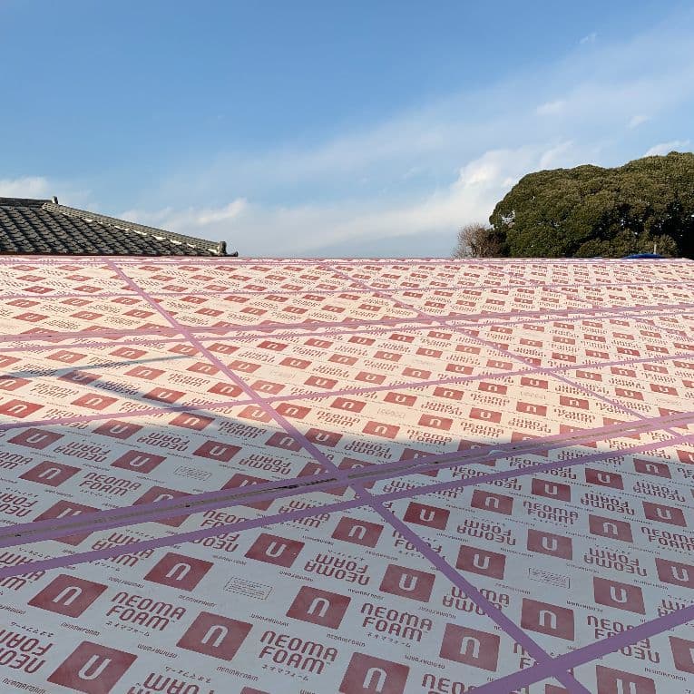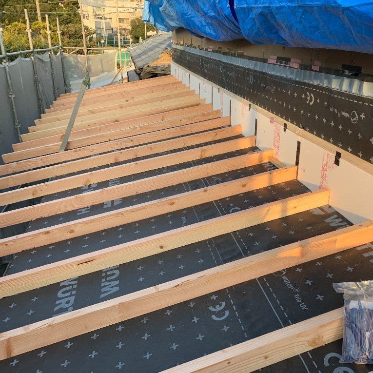 小屋裏温度の上昇を抑制し、夏の体感を改善。写真は屋根付加断熱の様子。