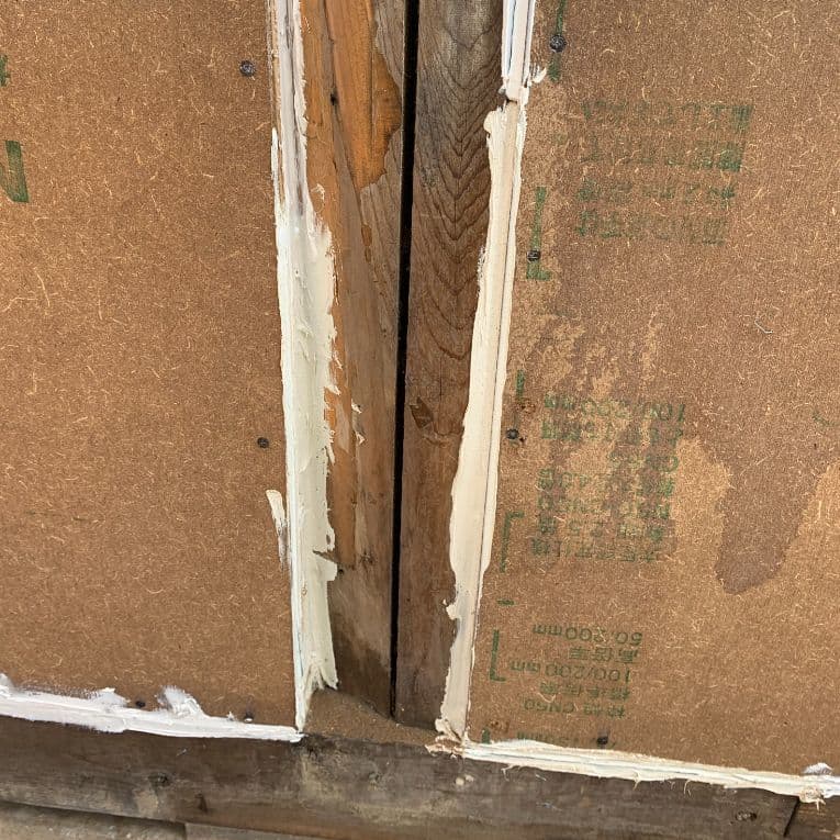 背割れやヌキ貫通穴、木痩せの穴や隙間も気密安定の為の下処理。